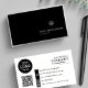 Logotipo blanco negro Código QR Tarjeta de presentación de panadería con borde plateado