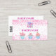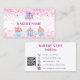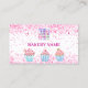 Un fondo blanco. Decorado con confetti rosa y pastelitos. Personalice y agregue su logotipo de negocio y un nombre en la parte posterior: Plantillas para su nombre, título, número de teléfono, dirección de correo y sitio web, su propio código QR a su sitio web o cuenta de red social. Iconos/cuenta de Facebook e Instagram.