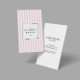 Las rayas rosas y blancas de moda le dan una personalidad retro a esta panadería. Este diseño recuerda a los helados y a las tiendas de dulces de ayer y le dará un toque nostálgico a su marca de negocios. Creado para panaderías, decoradores de pasteles, empresas de restauración, dulces, productos caseros o cualquier negocio que busque un motivo elegante. Su nombre está simplemente diseñado en un cuadrado blanco en la parte delantera, mientras que la información de contacto y los detalles están disponibles en la parte trasera. Diseño © 1201AM Design Studio