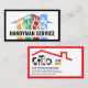 La cubierta cuenta con un diseño creativo en la azotea de un edificio que incorpora paneles de herramientas de mano. ; Cada diseño de herramientas puede representar parte del servicio que puede ofrecer, por ejemplo. El martillo puede representar obras de renovación o carpintería, la escalera de roller para la pintura en el hogar, el enchufe para las obras eléctricas y, por último, el grifo de agua para el servicio de fontanería. La descripción del servicio de cada logotipo se deja a su propia interpretación. Debajo de las herramientas está el nombre comercial "SERVICIO HANDYMAN" que puede cambiar. Todo esto está encapsulado por un marco de borde negro. Al dorso, una cubierta blanca tiene un marco de borde rojo con un techo rojo que tiene un icono de herramientas de mano. A continuación, su prestigioso nombre y los datos de contacto. Una tarjeta para el hombre a mano y los contratistas de construcción a usar.