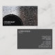 Una plantilla de tarjeta de visita con un panel semicircular negro decorado con una línea punteada blanca en la parte inferior izquierda para el nombre de la Compañía y el tipo de negocio. El panel semicircular se coloca sobre un fondo de foto o de arte (que también se puede cambiar). Nombre y otros datos de contacto en el reverso.
