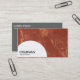Una plantilla de tarjeta de visita con un panel semicircular blanco en la parte inferior izquierda para el nombre de la empresa y el tipo de negocio. El panel semicircular se coloca sobre un fondo de foto o de arte (que también se puede cambiar). Nombre y otros datos de contacto en el reverso.