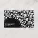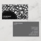 Una plantilla de tarjeta de visita con un panel semicircular negro decorado con una línea punteada blanca en la parte inferior izquierda para el nombre de la Compañía y el tipo de negocio. El panel semicircular se coloca sobre un fondo de foto o de arte (que también se puede cambiar). Nombre y otros datos de contacto en el reverso.