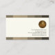 En la parte superior, el mismo tema de diseño se utiliza con el logotipo dorado, seguido de tu prestigioso nombre y los datos de contacto.