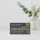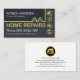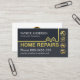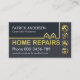 La cubierta incluye una línea de frontera de oro falso con una señal de oro falso subyacente "HOME REPAIRS". El borde dorado actúa como una demarcación para una capa superior azul oscuro contra una sombra más clara debajo. A la derecha hay un conjunto de herramientas de construcción de oro icono que puede representar algunos de los servicios que ofrece. En la parte superior de la tarjeta se encuentra tu prestigioso nombre y título de trabajo con los detalles de contacto y un pie de foto de un eslogan cerca de la base. Al dorso, en una cubierta blanca, en la parte superior hay un logotipo de paisaje dorado que se puede usar. A esto le sigue su prestigioso nombre, los detalles de contacto y una opción de subtítulo de eslogan. Una gran tarjeta para los negocios de reparación de casas y mano.