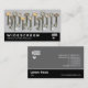 Una atractiva plantilla de tarjetas de visita diseñada teniendo en cuenta las industrias de cine, televisión, vídeo, radiodifusión, comunicaciones por satélite y audiovisuales, pero por supuesto también se puede adaptar a muchas otras industrias y usos, como el teatro, las agencias de actuación, los fotógrafos y las artes gráficas, por citar sólo algunos. La imagen del área de pantalla puede cambiarse si es necesario, ya que la tira de pantalla inferior es un gráfico independiente. Los logotipos (frontal y posterior) utilizados en este ejemplo son un símbolo de una de las fuentes de imagen atractivas y útiles de Zazzle y pueden ser reemplazados por un símbolo diferente, o su propio logotipo. La palabra "pantalla ancha" es, por supuesto, simplemente el nombre de este diseño y está destinada a ser reemplazada por el nombre de su empresa. La letra espaciada se consiguió añadiendo un espacio adicional después de cada letra. Por supuesto, puede usar letras espaciadas individuales si lo prefiere. También permite mucho espacio para nombres de compañías más largos.