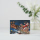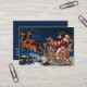 Una tarjeta de visita hermosa del navidad del vintage que ofrece a Papá Noel que monta su trineo por completo de juguetes sobre una ciudad del invierno.
