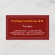 Este audaz y llamativo diseño de tarjetas de visita incluye un nombre, profesión e información de contacto que se puede personalizar. Podría ser utilizado por un profesional jurídico, como un abogado, un abogado, un abogado o un abogado.