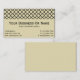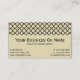 Dé a su tarjeta de visita un toque elegante con este pergamino vintage y el moderno diseño de quatrefoil. El cuatrefoil negro se destaca en el fondo crema, haciendo que tu nombre o información de negocios sea fácil de leer. Personalice su propio texto y haga una declaración con su imagen profesional. Dé una primera impresión sofisticada con esta tarjeta de presentación clásica en color negro y crema de quatrefoil. El exclusivo diseño de quatrefoil añade un toque de estilo a su nombre o información de negocios. Personalizar con su propio texto y mostrar su profesionalismo con esta elegante y elegante carta. Esta elegante tarjeta de visita cuenta con un hermoso patrón de quatrefoil sobre un fondo de pergamino vintage. El esquema de color negro y crema crea un aspecto atemporal que hará que tu nombre o información comercial destaque. Personalizar con tu propio texto y eleva tu imagen profesional con este diseño lujoso.