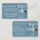 Un bonito par de pelícanos remando a lo largo de las tranquilas aguas azules. Esta tarjeta de visita personalizada es ideal para un negocio o empresa asociada con vistas al agua, el lago o la vida silvestre de las aves. Su nombre, nombre de empresa o negocio, profesión o título, teléfono, sitio de medios sociales, correo electrónico y dirección de sitio web se pueden introducir fácilmente con la plantilla. Cambie el texto y las fuentes a un estilo y color de su elección.