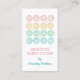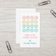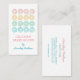 Tarjeta blanca de negocios con donuts de color pastel. Una deliciosa tarjeta de visita para un pastelero o panadería en rosa, blanco, verde, amarillo y azul.