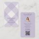 Tarjeta De Visita Pastel Purple Gingham Bakery Vertical QR Photo