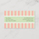 Una tarjeta de visita dulce con una cinta en un patrón a rayas. La combinación de melocotón pastel y rayas verdes crea un estilo caprichoso y elegante que evoca una sensación de juego y sofisticación que se adapta perfectamente a una panadería o a una tienda de ropa para niños.