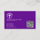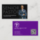 Tarjeta profesional de pastor senior, cuidadosamente diseñada para reflejar tanto el liderazgo espiritual como el estilo moderno. Con un fondo negro, un diseño fotográfico seguro y una tipografía limpia, esta tarjeta es perfecta para pastores, líderes de iglesias, ministros o evangelistas que buscan conectarse con su comunidad. El anverso resalta el título "Pastor Principal" con un personalizable que recorta la foto y el nombre, mientras que el púrpura en la parte trasera ofrece espacio para el nombre de tu iglesia, detalles de contacto, logotipo y un cómodo código QR para un fácil acceso a sermones, sitios web o boletines de la iglesia.