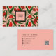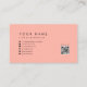 Patrón con tulipanes rojos y hojas sobre fondo rosado. Texto de personalizable completo. Puede agregar su propio logotipo y código QR. Tarjeta de visita para salón de belleza, floristería, mujer, maestro de uñas, maestro de frente.