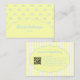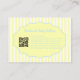 Tarjeta de presentación de patrón de arco y raya azul amarillo de moda pastel diseñada para marcas bonitas, femeninas y delicadas. Perfecta para boutiques de ropa de bebé hecha a mano, artistas de maquillaje y propietarios de pequeños negocios. Características de integración de código QR con estilo con una estética suave de inspiración vintage para branding moderno y llamativo.