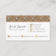 Este encantador ilustracion de búho marrón muestra una lechuza de inspiración vintage enclavada entre ramas y hojas de tierra, creando un ambiente rústico y antiguo. Este motivo decorativo de búho, con sus cautivadores ojos amarillos, está cuidadosamente organizado en un patrón de tejas repetidas, por lo que se puede escalar más o menos según el aspecto que se desee. El diseño se repite en la parte posterior de la tarjeta. La parte frontal incluye una fuente de guión cursiva de personalizable para su nombre en negro, y un lugar donde puede agregar el título de su trabajo. Esta tarjeta funciona bien para cualquier profesional, y el aspecto vintage es especialmente adecuado para anticuarios, tiendas de remesa, librerías y tiendas de segunda mano. La parte trasera incluye iconos de medios sociales así como iconos de contacto en una textura de Relieve metalizado dorado, y todos son personalizables y se pueden mover por ahí.