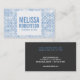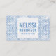 Un patrón vintage en blanco y azul sellado a mano junto con tu nombre o nombre de negocio crea un diseño único en esta plantilla creativa de tarjetas de visita. © 1201AM CREATIVE