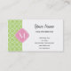 Tarjeta De Visita Patrón de cuatrefoil verde y rosa con monogramo