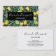 Tarjetas de visita con un patrón de bonito con limones amarillos y frutos de cal verde con tallos de hojas colocados sobre un fondo verde oscuro.