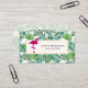 Tarjetas de visita profesional modernas con un patrón de hojas tropicales verdes y un marco blanco con un borde dorado sobre la parte superior. Un ilustracion flamingo rosa aporta un toque de fantasía.