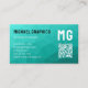 Tarjeta De Visita Patrón de malla geométrica turquesa Código QR Mono