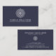 Elegante patrón de mandala blanca y pequeños puntos sobre fondo azul oscuro. Plantilla de tarjeta de presentación de planificador de bodas personalizable.