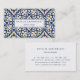 Las tarjetas de visita con un diseño único presentan un patrón geométrico de inspiración mediterránea en azul marino, amarillo dorado soleado y blanco crujiente, inspirándose en azulejos tradicionales españoles y portugueses. Personalice su nombre y título o profesión en la parte delantera, con todos sus datos de contacto al revés.