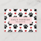 Cuidadas, divertidas y adorables tarjetas de visita con patas negras y corazones rojos. Diseño moderno y de moda, perfecto para entrenadores de perros, perritos, caminantes de perros, mascotas, mascotas y veterinarios.