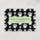 Cuidadas, divertidas y adorables tarjetas de visita con patas blancas sobre fondo negro. Diseño moderno y de moda, perfecto para entrenadores de perros, perritos, caminantes de perros, mascotas, mascotas y veterinarios.