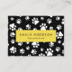Cuidadas, divertidas y adorables tarjetas de visita con patas blancas sobre fondo negro. Diseño moderno y de moda, perfecto para entrenadores de perros, perritos, caminantes de perros, mascotas, mascotas y veterinarios.