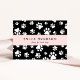 Cuidadas, divertidas y adorables tarjetas de visita con patas blancas sobre fondo negro. Diseño moderno y de moda, perfecto para entrenadores de perros, perritos, caminantes de perros, mascotas, mascotas y veterinarios.