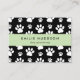 Cuidadas, divertidas y adorables tarjetas de visita con patas blancas sobre fondo negro. Diseño moderno y de moda, perfecto para entrenadores de perros, perritos, caminantes de perros, mascotas, mascotas y veterinarios.
