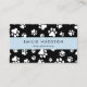 Cuidadas, divertidas y adorables tarjetas de visita con patas blancas sobre fondo negro. Diseño moderno y de moda, perfecto para entrenadores de perros, perritos, caminantes de perros, mascotas, mascotas y veterinarios.