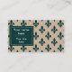 Tarjeta De Visita Patrón Fleur de Lis, francés, real, verde