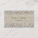 Esta es una tarjeta profesional y atractiva para cualquier persona profesional. Tiene un estilo de remolino florido de bonito, de estilo antiguo, en verde salvia, beige y blanco por delante y por detrás, con información contenida en un campo gris salado semitransparente, bordeado por líneas blancas finas. Ambos lados de la tarjeta tienen la misma imagen con el texto del personalizable. Los campos de texto se expandirán para contener más información, si es necesario. ¡Muy elegante y distintivo! Fácilmente adaptado a casi cualquier negocio o profesión.