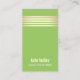 Bandas horizontales de oro fino sobre fondo verde brillante. **NO Relieve metalizado real. Nombre simple delante. Una creativa tarjeta de red de moda para bloggers de belleza y moda, estilistas, diseñadores de interiores, peluquerías, manicuristas y diseñadores de joyas.