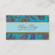 Hermoso estilo floral art deco con flores verdes sobre fondo azul turquesa. Plantilla de tarjeta de visita con texto/información completamente personalizable. El diseño está disponible en otros productos.
