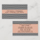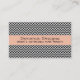Moderna y elegante tarjeta de visita Chevron con fondo de rayas de zigzag en blanco y negro y un sencillo overlay de melocotón. Esta moda y diseño elegante es fácil de personalizar con los detalles de su negocio. Haga clic en "Personalizar" para encontrar más opciones de personalización.