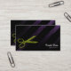 Tarjeta De Visita De Peluquería Tijeras Moradas Y Verdes. Personalice para cualquier ocupación.