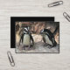 Esta tarjeta de intercambio de artistas muestra a dos adorables pingüinos africanos parados en una cornisa rocosa. Son pájaros acuáticos y sin vuelo cuyas alas se han convertido en aletas. Cada una tiene una franja negra y manchas negras en el pecho. El patrón de puntos es único para cada pingüino, al igual que las huellas dactilares humanas. Tienen glándulas rosas sobre sus ojos y pies rosados y negros.