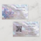 Esta elegante tarjeta de visita de lujo presenta un diseño de peonía irisada de nácar y una elegante letra manuscrita. En el reverso hay un código qr escaneable y una plantilla personalizada para nombre, dirección y redes sociales. Esta tarjeta de visita de glamour profesional es perfecta para salones, artistas de maquillaje, joyería y más.
