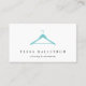 Elegantes tarjetas de visita para costureros, diseñadores de moda, sastres, alteraciones, diseñadores de disfraces, compradores personales o limpiadores secos cuentan con un colgador de ropa en azul turquesa vibrante de moda, con dos líneas de texto personalizado debajo de un negro crujiente. Personalizar la parte posterior con los datos de contacto completos en letras blancas sobre un fondo negro.
