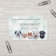 Una encantadora tarjeta de visita con perros dulces con burbujas y espuma de jabón en la cabeza. Mostrando al cliente cómo su dulce mascota será mimado y tratado como regalías en su negocio mascota de preparación. Llabrador negro, caniche, viejo perro barbudo inglés, pomerano y dalmitiano. Avalible con fondo en diferentes tonos de acuarela, y sencillo blanco claro clásico.