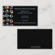 Esta tarjeta de visita contiene pequeñas y coloridas huellas de pata en un fondo negro. A la derecha está la información para su empresa, empleado, dirección, teléfono y sitio web. Todo el texto en la parte delantera de la tarjeta es editable, así que adelante y cambia la ubicación del tipo de letra, el estilo, el tamaño y el color y hazlo suyo. ¡Disfruta de tus tarjetas de visita de Perro Groomer con Paws Mimados!