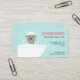 Divertido ilustracion de un terrorífico desinfectado en un baño de burbujas. Un lindo diseño de tarjetas de visita para criadores de perros, spas mascotas, salones de perros y negocios de lavado de perros para el bricolaje. Los colores de fuente y el color de fondo verde azulado se pueden personalizar. Visite el mundo Doodle de Jenn para obtener tarjetas de visita más originales para el cuidado de mascotas y divertidos personalizados de animales. ©Jenn Inashvili