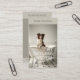 Perro en una tarjeta de visita Grey Business Card Mascota Grooming Services tiene una notable foto de un perro collie con bordes blancos y marrones posando dentro de una bañera en un cuarto de baño con un interior elegante. Los colores son neutros y claros, con un énfasis en el diseño de la tipografía principal que complementa el lujoso ambiente del perro en un elegante cuarto de baño.