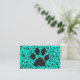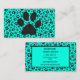 Tarjeta De Visita Perro Paws Black and White Polka Dot en cian vivo