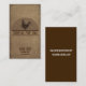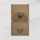 Tarjeta de visita personal del cocinero con el fondo de la arpillera y el gráfico del gallo. Tarjeta bilateral con el espacio para añadir el Web site, el correo electrónico, y la otra parte posterior de la información personal encendido. Perfeccione para un cocinero, un chef ejecutivo, un culinario personales, y abastecedor.