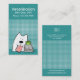 La tarjeta de visita vertical para el profesional de cuidado de mascotas incluye un perro, un gato y un pájaro con un fondo verde azulado. Pequeño acento de puntos de polka blanco. Tarjeta personalizar con su propia información. El diseño le permite personalizar de texto frontal y posterior. Diseño original de S. Fernleaf Designs for BlessingartAnimales.